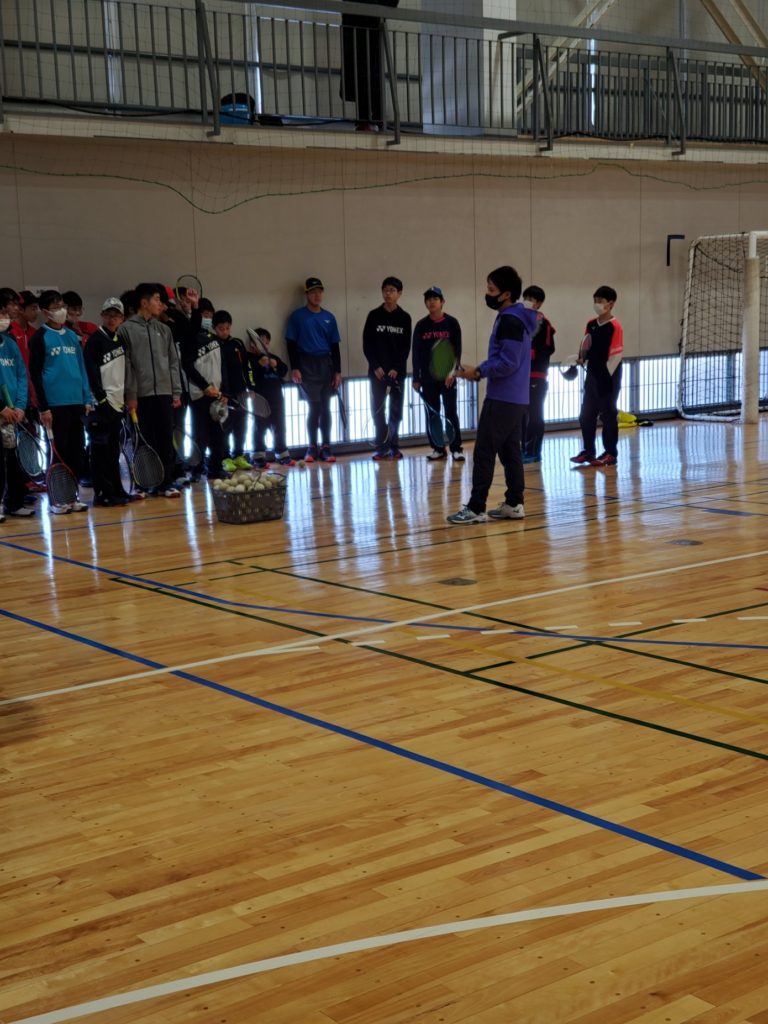 講習会はサーブ練習(イースタングリップでドライブをかけるサーブの基本)とバックストロークの基本をしました。少しでも自分のレーの役に立ててもらいたいと思います。