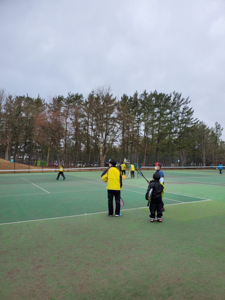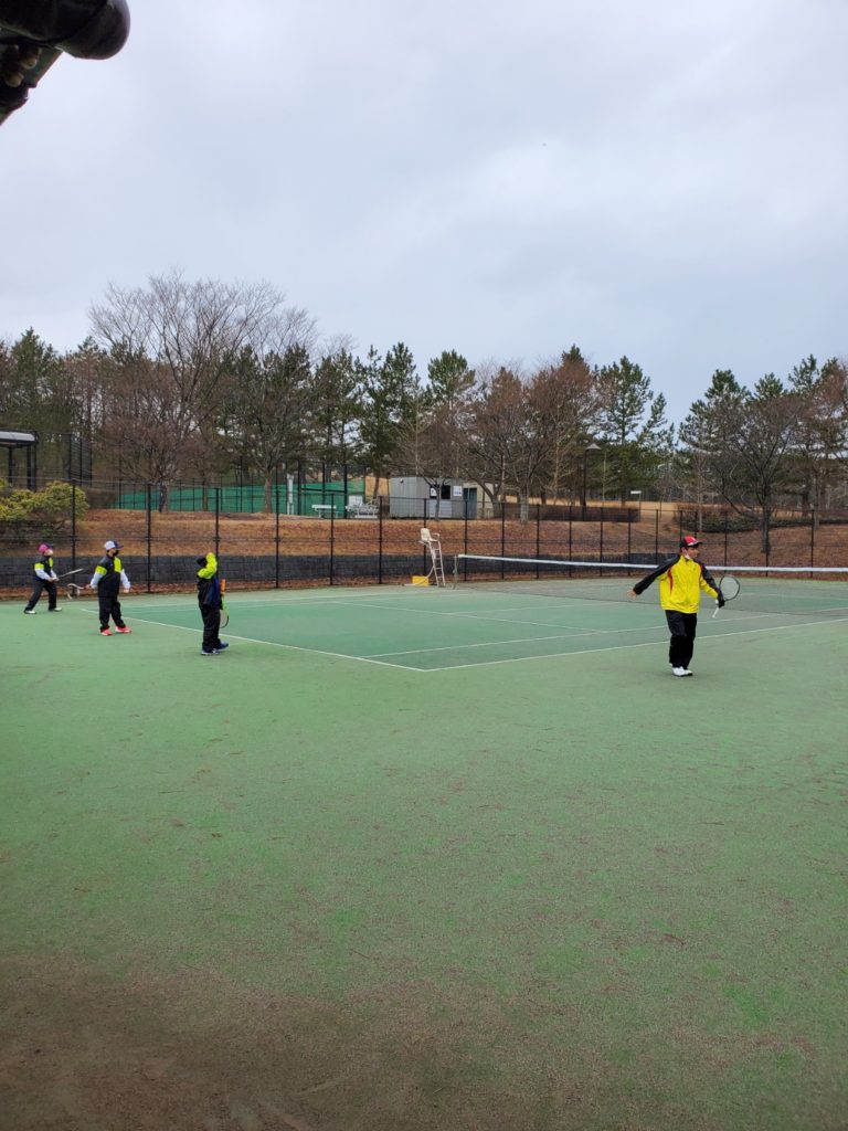 また、今日は雨で大変でしたが、何とか予定通りにできました。乱打を1時間、試合を1時間半ほど行いました。