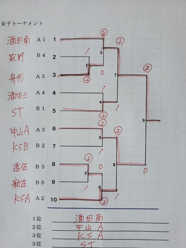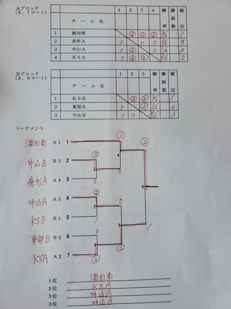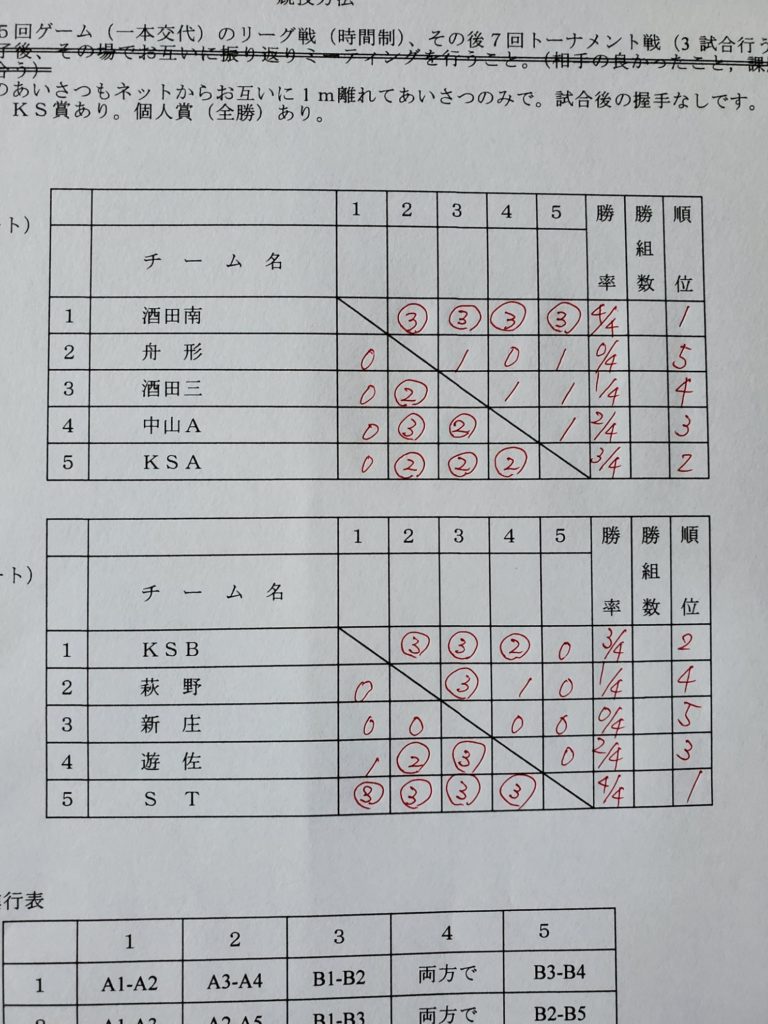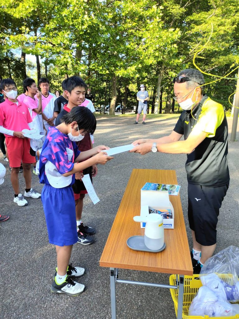 今回は、高校生にも参加してもらいました。酒田南高校からは36回大会でも参加してもらい2回目になります。中学校がアンダー14選考会とかぶり参加校が少なかったため急遽お願いしました。特に女子は個人インターハイにでる2ペアも参加してもらい、中学生にはいい経験になったと思います。男子も決勝はあと一歩まで追い込みましたが、さすが高校生で最後はしっかりとしめてくれました。