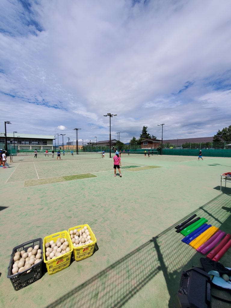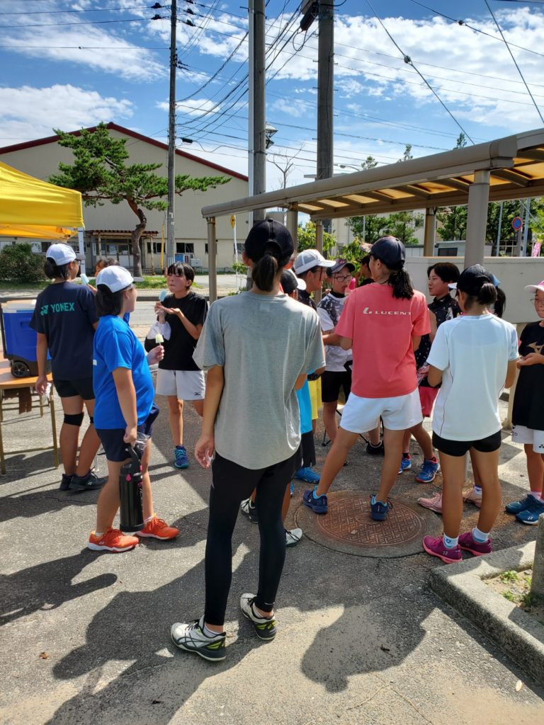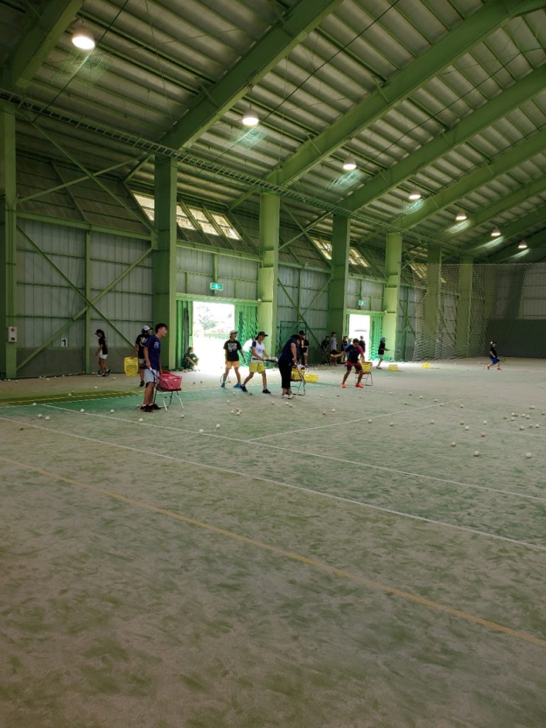 2日目、天気も良く立川テニスコートでみっちり行いました。午後の試合の途中には恒例のアイスも食べて頑張りました。