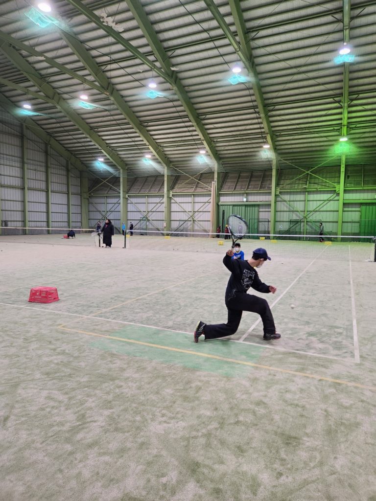 前衛練習では、KSクラブの卒業生で余目中学時代は全中2年連続出場、羽黒高校では県チャンピオンの本間愛真選手が指導しています。卒業後は新潟に行くので、それまでKSクラブの練習のお手伝いをしています。