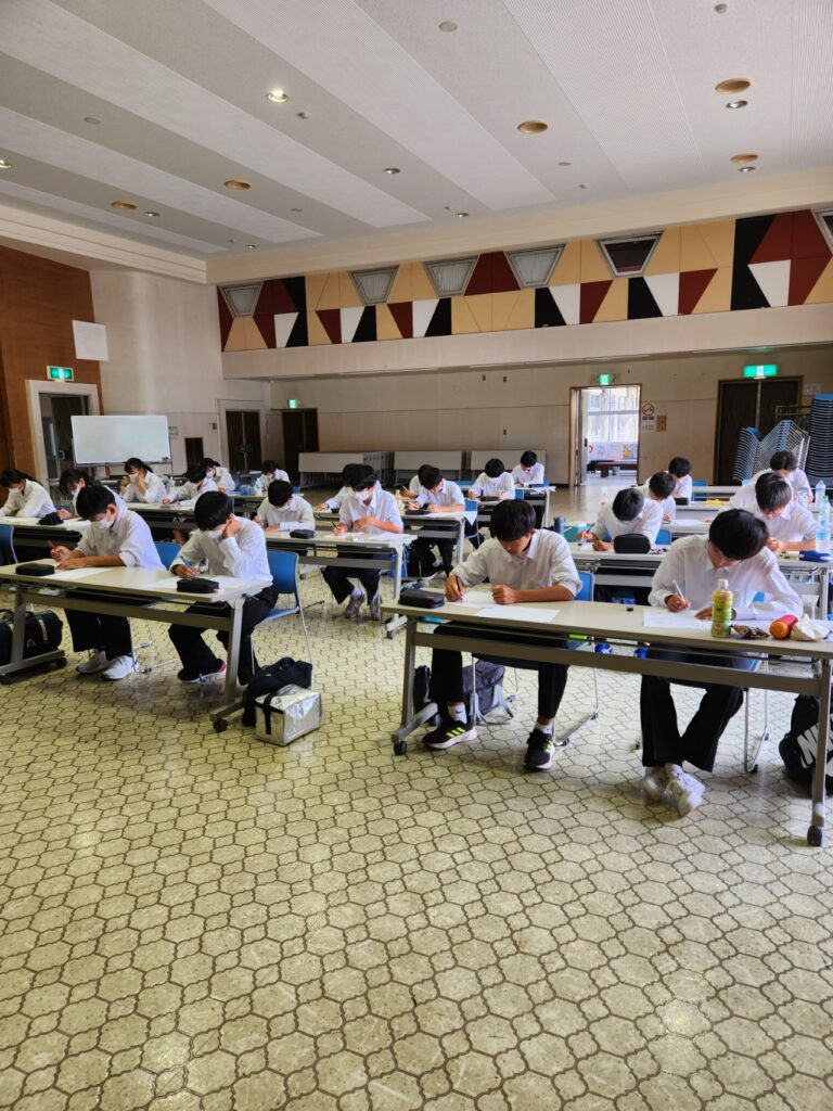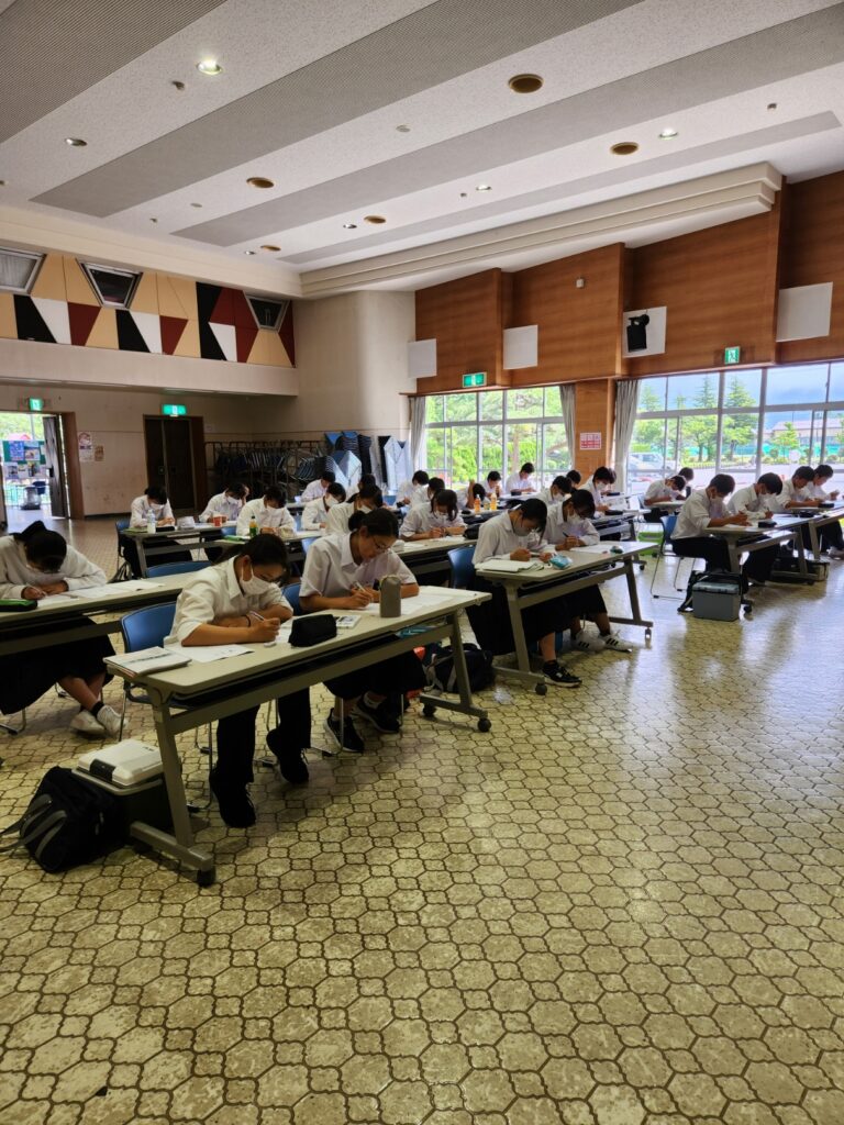 9時~16時まで、公民館の大ホールを借りて行っています。理科と数学は講習も行い、後は自学ですが、家ではどうしても集中できない人も頑張っているようでした。