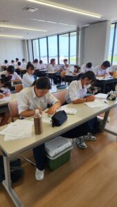 9時~16時まで、狩川まちづくりセンターの研修室で行いました。中には、朝学校のボランティア活動をした後に参加したり、午前中学校のクラブの練習後に参加した人もいました。