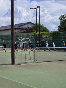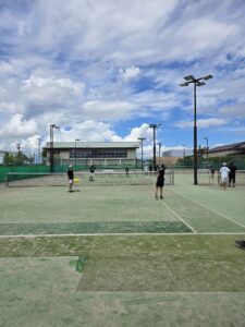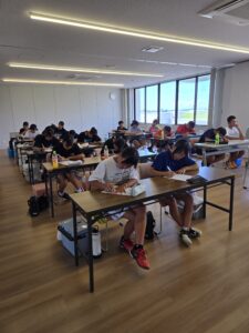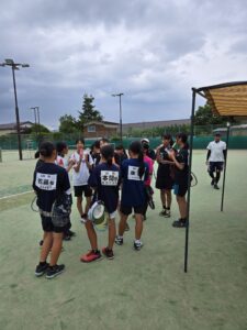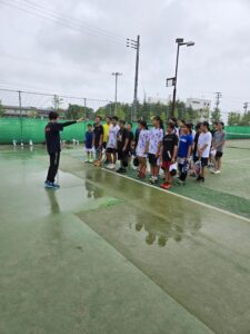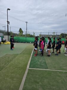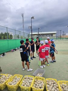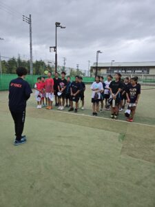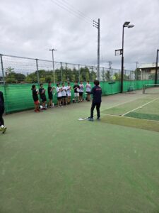 初日は通常の練習を行いました。昼食後は、テニスに関しての勉強会です。KSクラブが大事にしていること、次の大会に向けての目標設定など行いました。午後にコーチからあいさつ程度してもらいました。まだ、この時点では明日からの地獄を生徒は知りません。