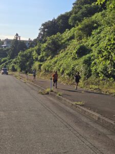 練習後は、山にある合宿所までランニングです。3kmないですが坂があり大変です。