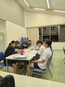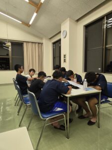 合宿所では、夕食後は勉強会です。KSクラブの合宿に遊びの時間はありません。