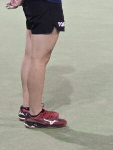 中には、夏はソフトテニス、冬はスキーと二刀流で活躍したOGもいます。中学校高校でもスキーで活躍し、現在大学生でインカレでも上位に入っているそうです。大学の合宿では1日100Km以上の自転車や40kmのランニング等もあったそうです。見事な太ももでした。